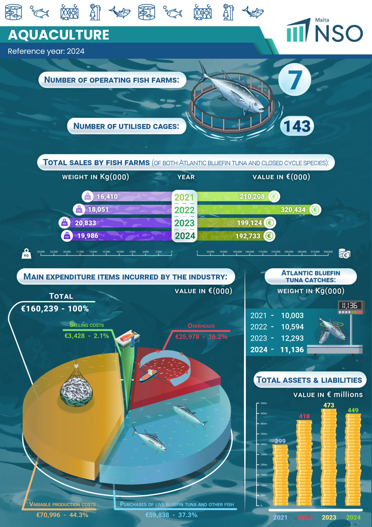 Malta’s aquaculture industry recorded a notable recovery in 2024, with gross value added (GVA) shifting from a negative balance of €67.4 million in 2023 to a positive €31.6 million in 2024, according to newly published NSO figures.