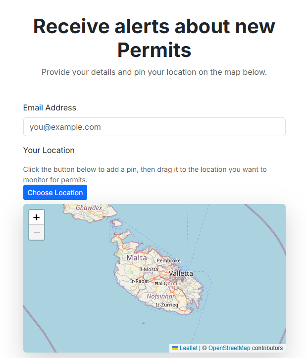 Alongside the map, Mr Agius Muscat also developed a separate application alerts.permess.mt that sends users email alerts for any developments in areas they choose.